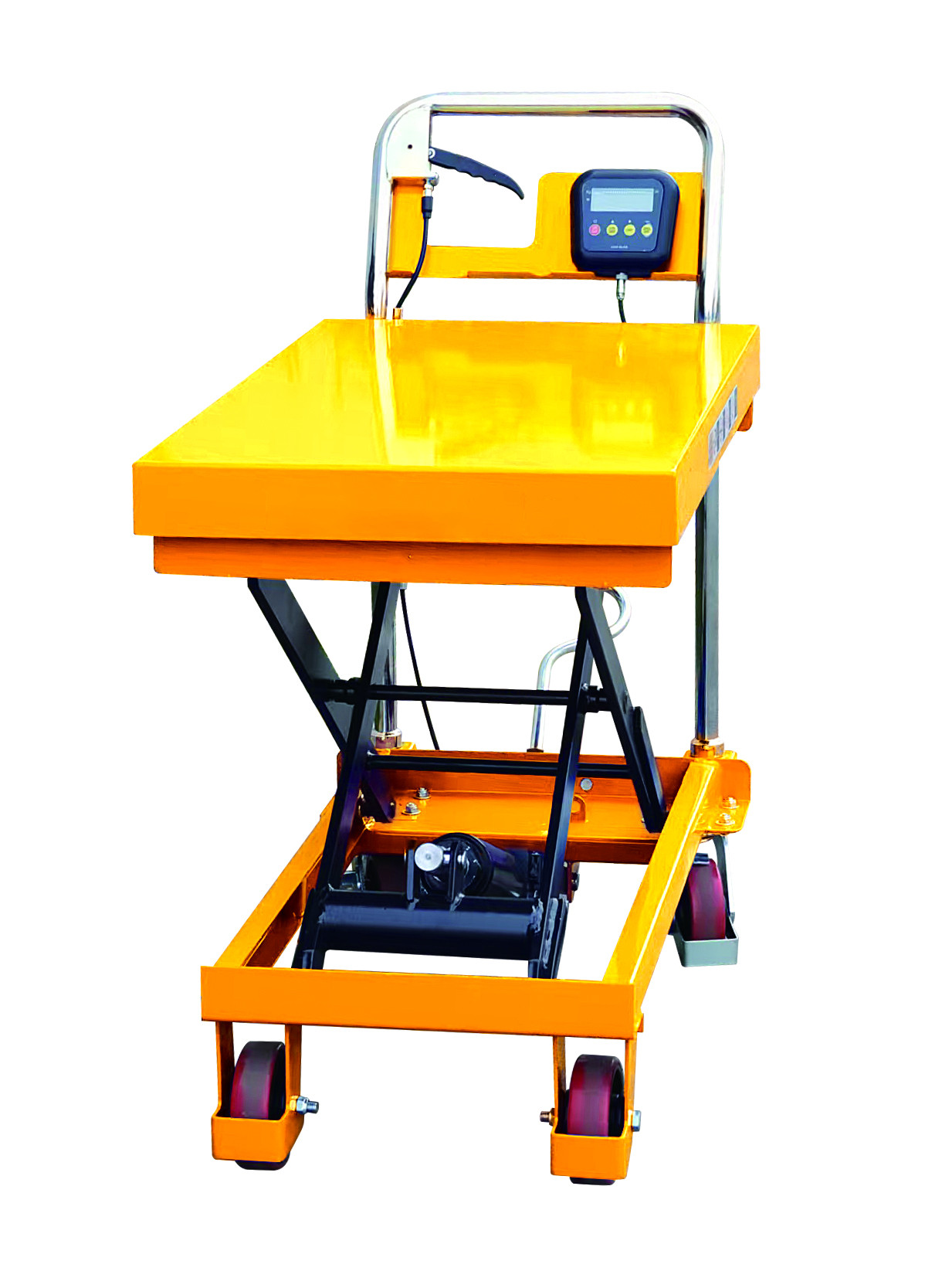 PT300A Scissor lift table with added weigh scales calibrated to 300kgx100g